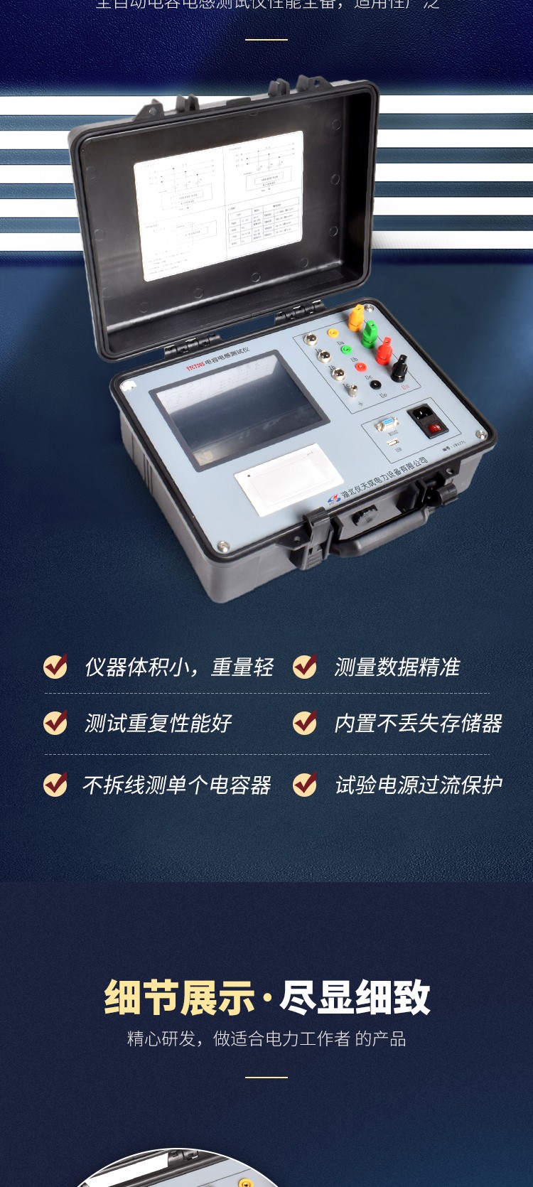 1.儀器可在不拆線的情況下,一次接線可完成三相電容器組的電容器測量。