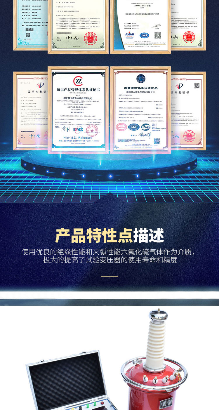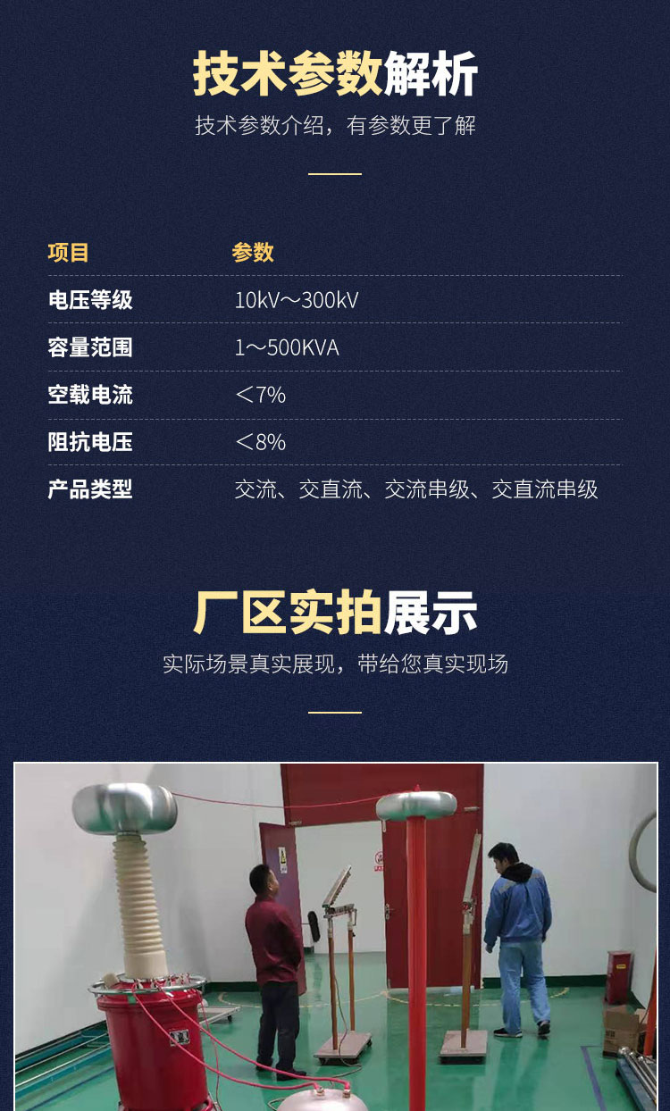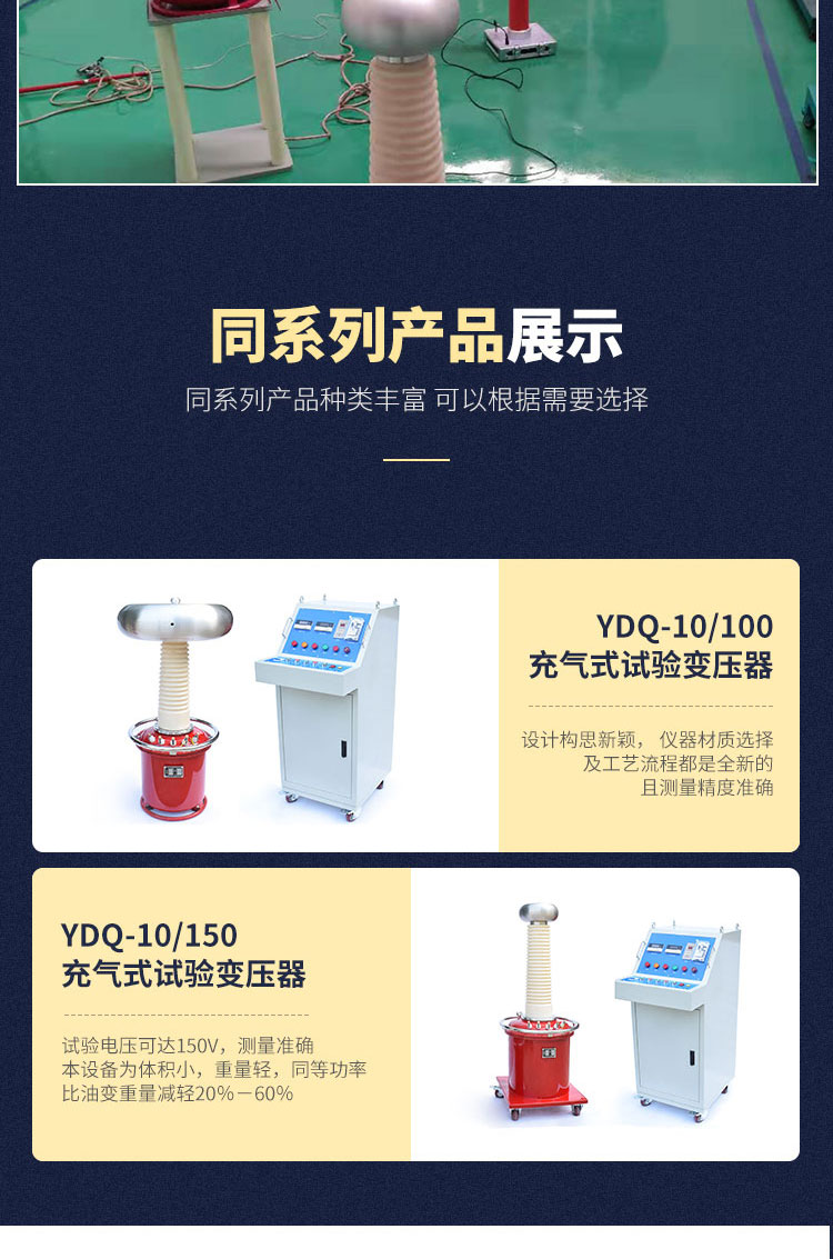 試驗變壓器是電力設備檢測及預防性試驗所需要的試驗設備。隨著我國電力工業的發展,對試驗變壓器的電壓等級要求也越來越高,而傳統的油浸式試驗變壓器,無論在體積上和重量上還是在性能上都越來越不能滿足現場工作的要求。