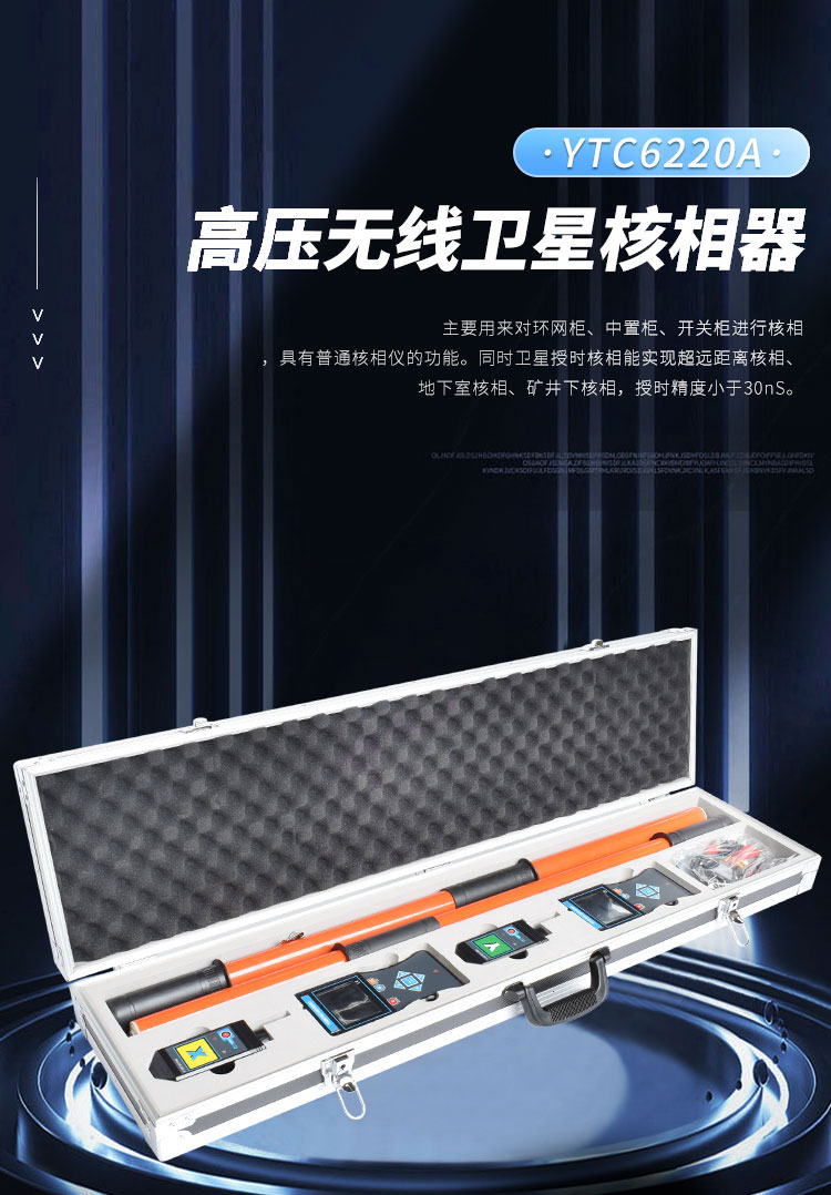 YTC6220A無線高壓衛星授時遠程核相器由X接收器、Y接收器、X探測器、Y探測器、伸縮絕緣桿等組成,可以對環網柜、中置柜、開關柜進行核相,具有普通核相儀的功能。衛星授時核相能實現超遠距離核相、地下室核相、礦井下核相,授時精度小于30nS。除了具有普通核相器的功能外,還內置六合一多模衛星授時模塊,可以同時接收六種衛星授時系統的GNSS信號,并且實現聯合授時,確保核相準確。同時具有高壓驗電器、高壓相位表、高壓相序表的功能,可以用于驗電、相序測試,變壓器組別判斷等。