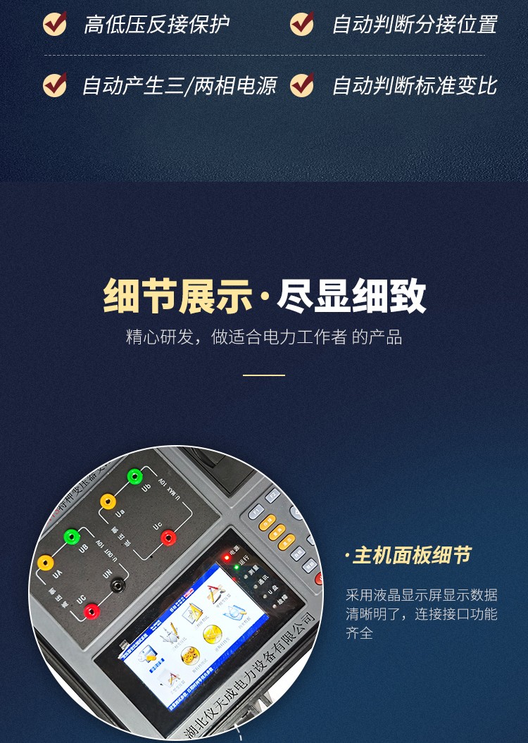1、特別適合特種變壓器的變比及相位差測試。