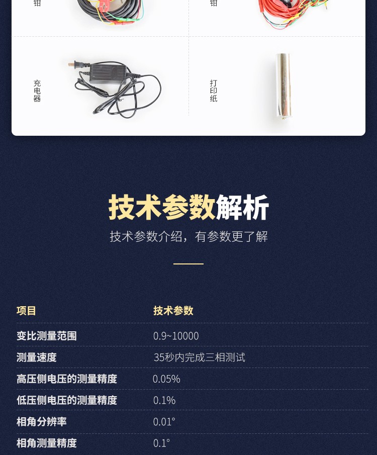 4、不受變壓器內(nèi)部接線方式的約束,直接測量高、低壓側(cè)的電壓比值及相角差。