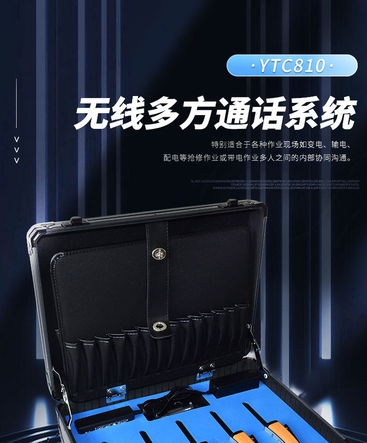 YTC810無線多方通話系統是研發的新一代電力檢修用現場指揮通訊裝置,由終端和藍牙耳麥組成。其工作原理是:用戶佩戴藍牙耳麥,與終端通過藍牙無線傳輸話音;多個終端之間通過專用無線建立一個遠距離通信網絡,從而使多個遠距離的用戶可像面對面一樣的通話。