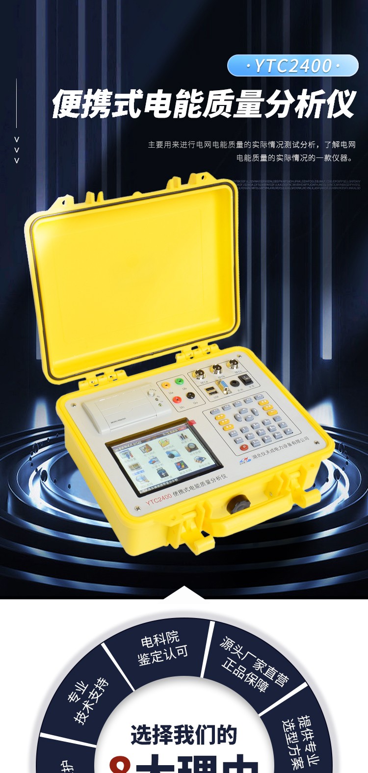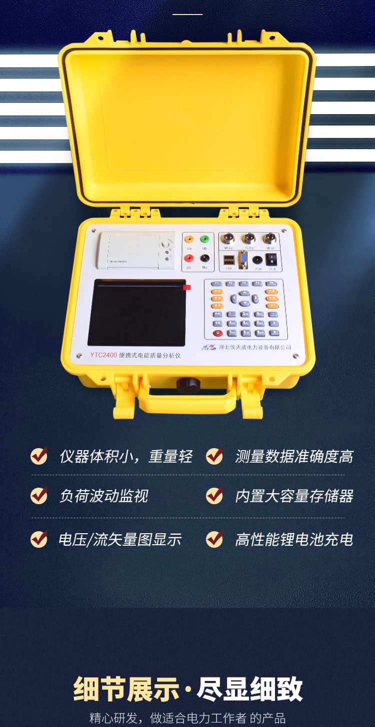 YTC2400電能質量分析儀是我司根據國家相關標準精心研制的一款用來測試電網電能質量的實際情況的測試儀器,具有體積小、重量輕、便攜式和手持式兩種形態,方便現場試驗等特點。