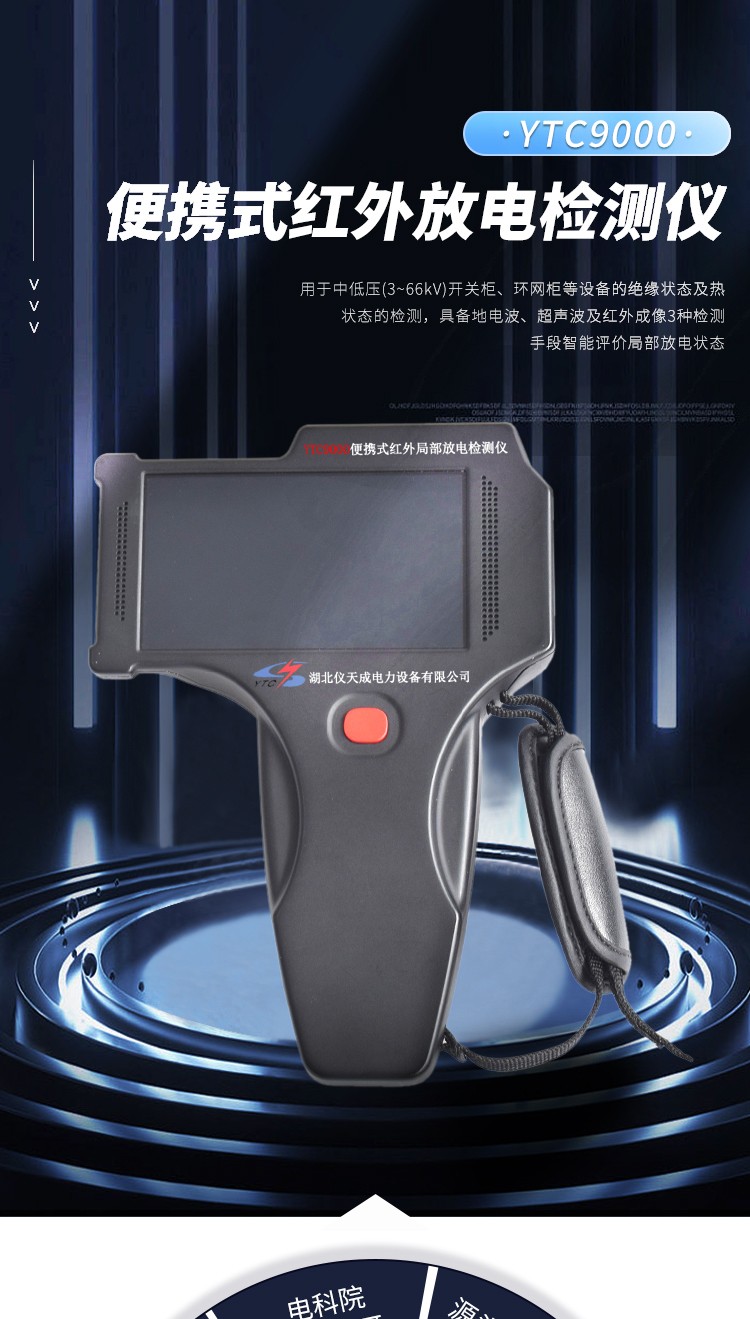 YTC9000便攜式紅外局部放電檢測儀用于中低壓(3~66kV)開關(guān)柜、環(huán)網(wǎng)柜等設備的絕緣狀態(tài)及熱狀態(tài)的檢測。