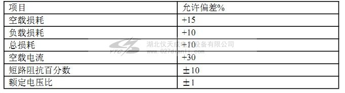 c)無局放試驗變壓器的空載電流、空載損耗、短路阻抗百分數(shù)、負載損耗、額定電壓比的允許偏差應(yīng)不超過表4的規(guī)定。