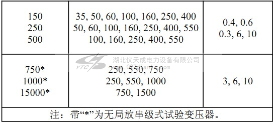 a)單臺無局放試驗變壓器的短路阻抗百分數(shù)為4%~12%。串級式無局放試驗變壓器的短路阻抗百分數(shù)應(yīng)不大于18%。在表1中末包含容量的串級式無局放試驗變壓器的短路阻抗由制造廠和用戶協(xié)商確定。單臺和串級式無局放試驗變壓器空載電流不大于額定電流的10%。